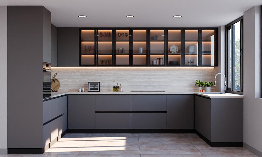 Высота корпусов нижних модулей со встроенным профилем Gola - 888 мм