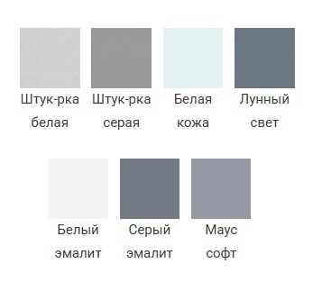 Оттенки: Штукатурка белая, Штукатурка серая, Белая кожа, Лунный свет, Белый эмалит, Серый эмалит, Маус софт
