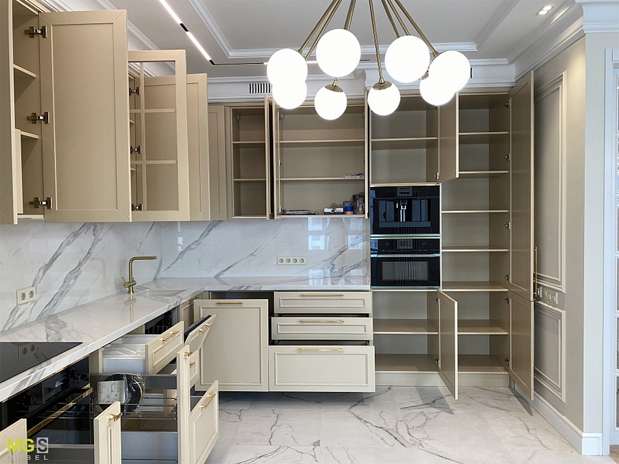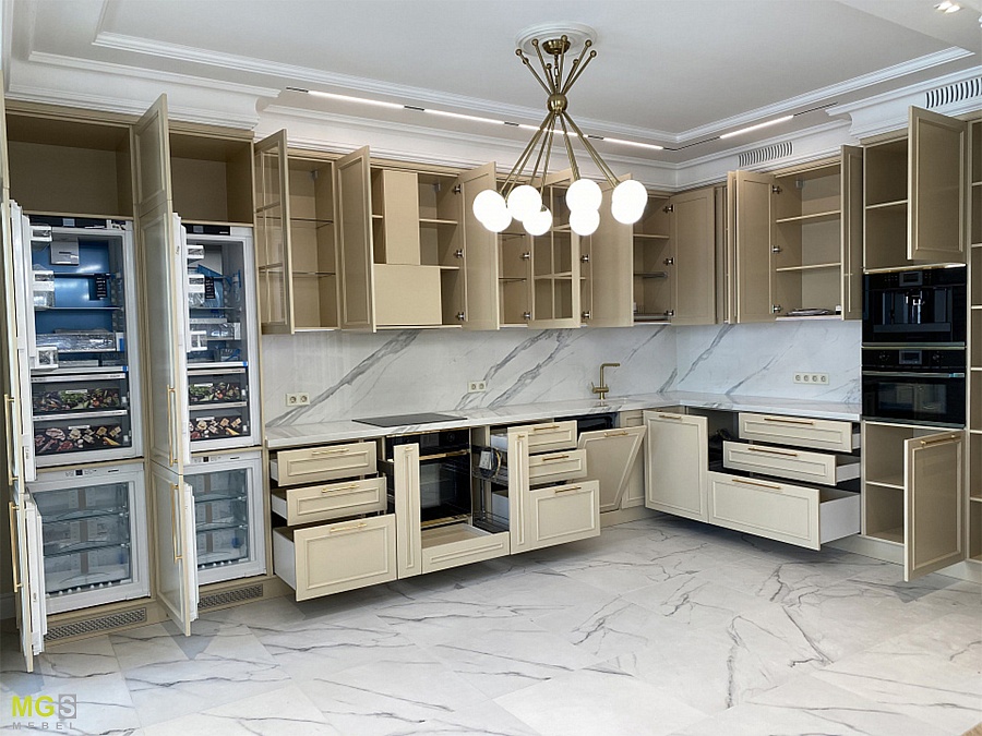 Угловая кухня для загородного дома.